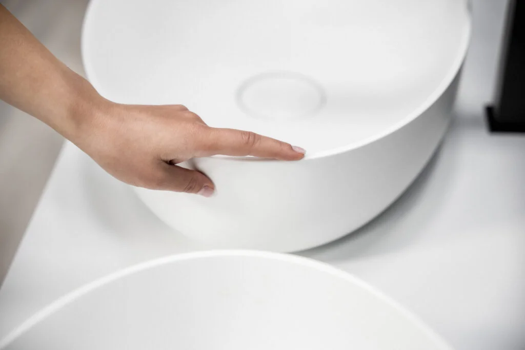 Kerrock is a solid and environmentally friendly material composed of a ratio of bauxite, aluminum hydroxide, and acrylic-based polymer binder. It is suitable for food contact, allows for multiple recycling, and does not contain volatile organic compounds. In addition, it has a long lifespan and is made from local raw materials, reducing its impact on the environment. Kerrock can be easily reshaped into various products.